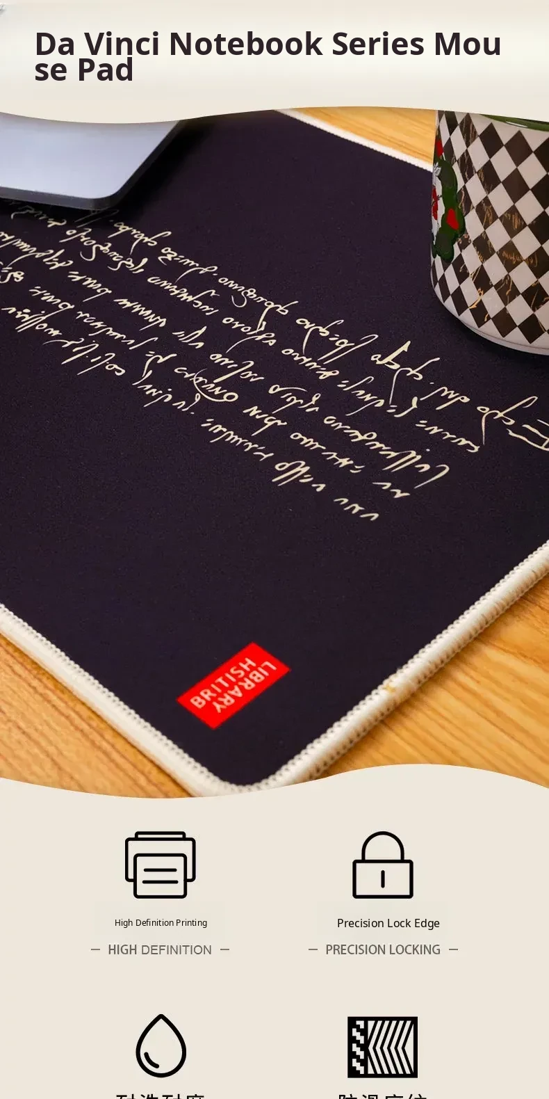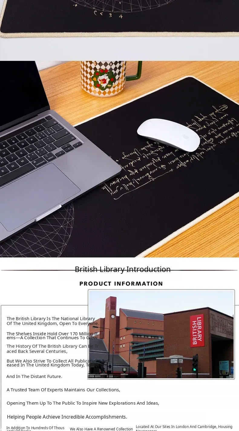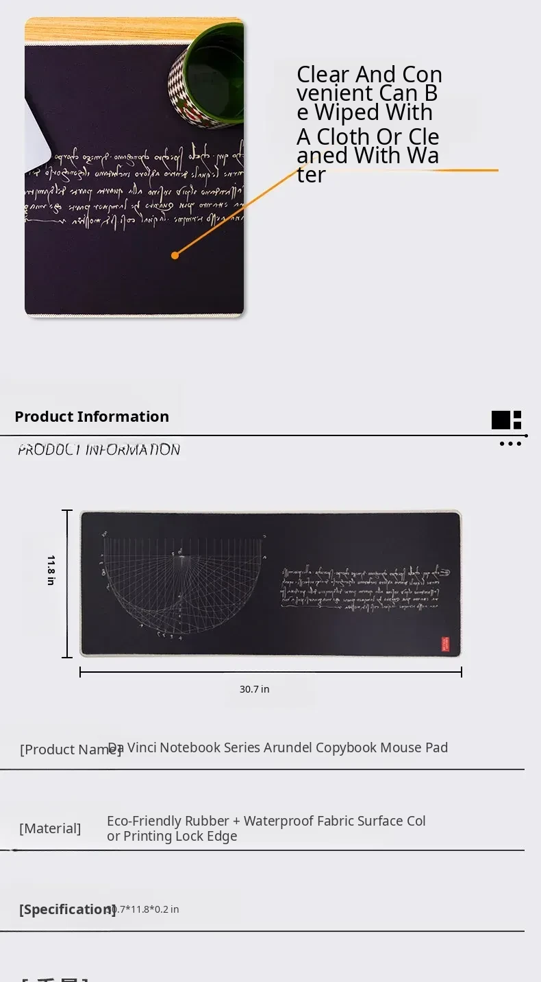 British Library x Mouse Pad - Da Vinci Arundel Manuscript Desk Mat for Stylish Office Decor