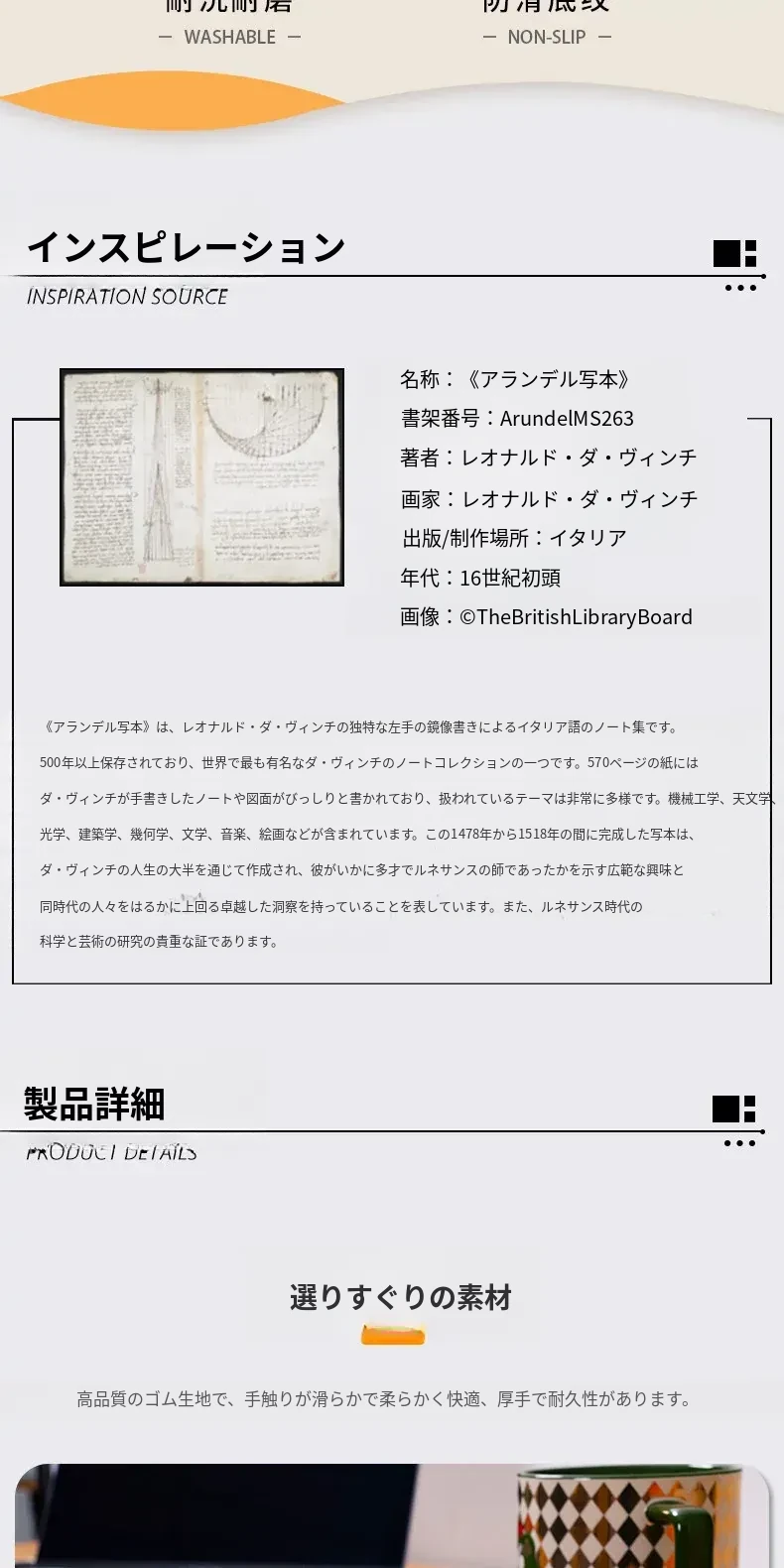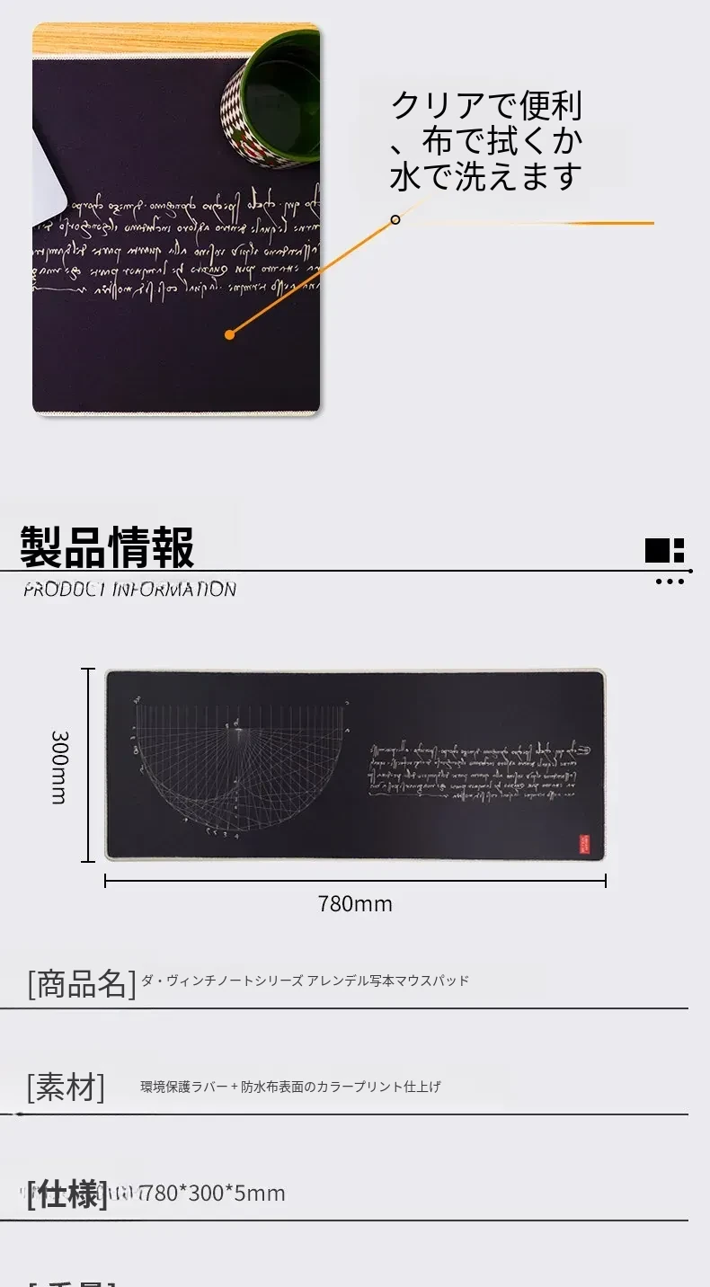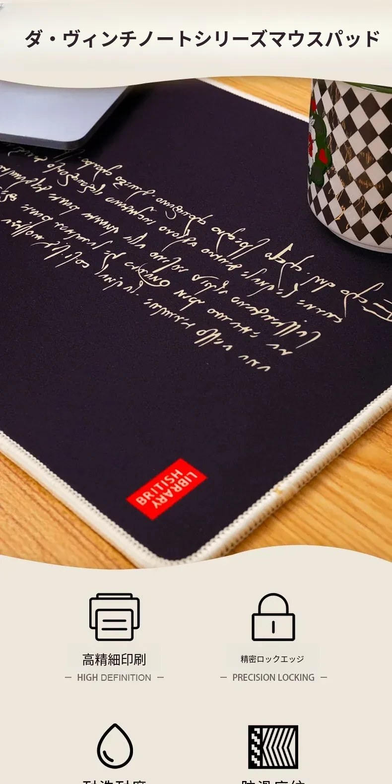 大英図書館コラボマウスパッド ダ・ヴィンチ アレンデル写本 オフィスデスクマットで創造力を刺激!